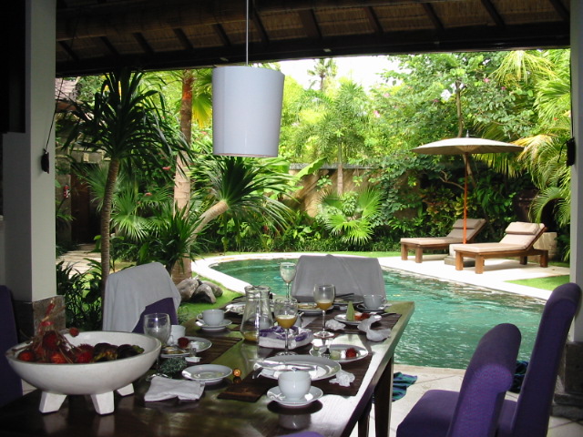 還有個游泳池 吃早餐也能如此浪漫